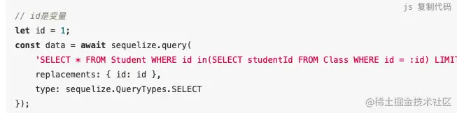 三 在sequelize防止sql注入写法(预编译防止SQL注入)