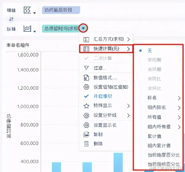 想做这样的数据处理,我们不需要像Excel那样写很复杂的函数,在FineBI中,我们只需要通过快速计算功能就能完成,再通过拖拽就能轻松制出下面的趋势分析图: