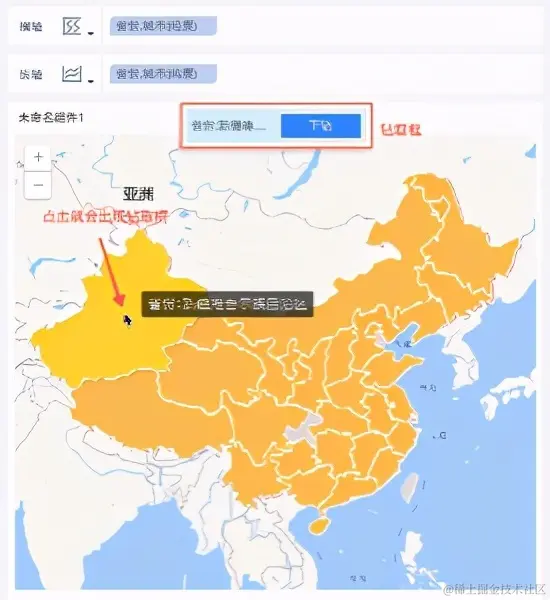 同时,对于某个省份的数据,FineBI还能进行钻取,把每个市、每个区的数据都展现出来,十分方便。