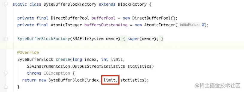 查看 blockFactory 的具体实现类, blockSize 参数实际控制的是 buffer。对象存储里的这个 blockSize 参数 和 hdfs 里不是一个概念!