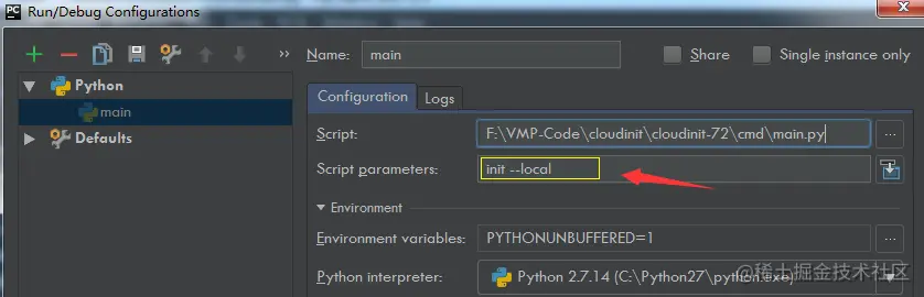 有时候,在运行/调试脚本的时候,我们需要指定一些参数,这在命令行中,直接指定即可。