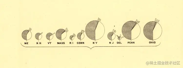 改变饼图的面积大小是一种可视化比例的方法。但是,就最佳实践而言,我强烈建议不要使用此方法,因为这样做时,人们无法准确地阅读和比较每个楔子。同样,楔形的大小变化也可以用来误导人们。