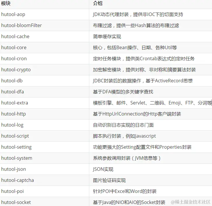 Hutool中的工具方法来自每个用户的精雕细琢,它涵盖了Java开发底层代码中的方方面面,它既是大型项目开发中解决小问题的利器,也是小型项目中的效率担当。