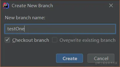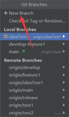 需要注意,IDEA创建分支并没有要求选择依据哪一个分支或标签进行创建操作,因此该创建分支操作默认使用当前分支为依据进行创建,需要依据其他分支进行创建可自行切换分支
