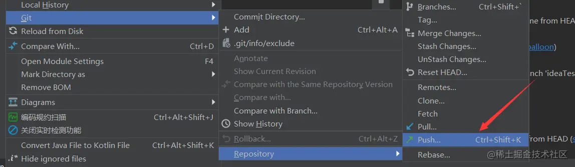 当然,IDEA的创建分支依旧是在本地进行操作,并没有同步到远程,此时就需要进行推送分支更新操作