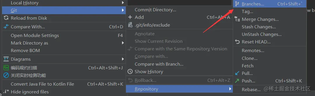 IDEA相比于Tortoise操作比较方便,且在分支创建完毕后会自动切换到创建出来的分支