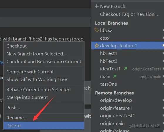 右下角选择需要删除的分支,如图操作
