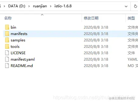 如我 解压到 D:\ruanjian\istio-1.6.8