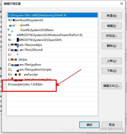将D:\ruanjian\istio-1.6.8\bin 添加到环境变量中