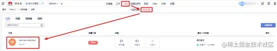 点击项目“demo”项目顶部菜单栏“代码”,然后选择“代码检查”进入代码检查界面,选择“web-dev-codecheck”检查任务,进入