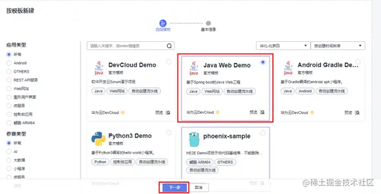 选择名为“Java Web Demo”的官方代码仓库模板,点击“下一步”。