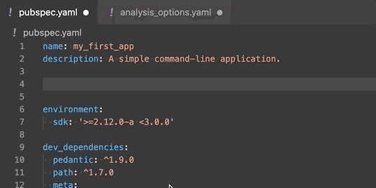 LSP 的支持不仅限于Dart,它还支持 pubspec.yaml 和 analysis_options.yaml 文件中的代码完成。