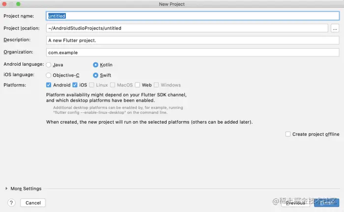 用于 IntelliJ 系列 IDE 的 Flutter 插件也为 Flutter 2 提供了许多新功能,首先有一个新的项目向导,它与 IntelliJ 中的新向导样式匹配。