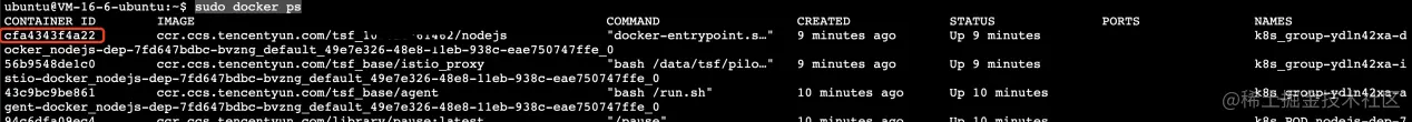 sudo docker ps #查找容器id