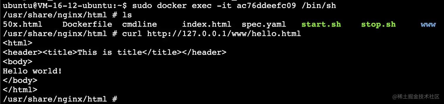 sudo docker exec -it cfa4343f4a22 /bin/bash #进入容器内部