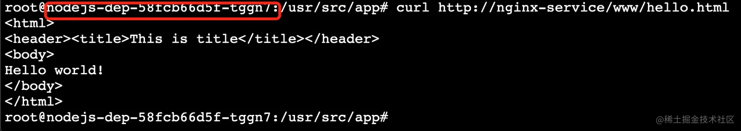 4. 在 Node.js 服务容器内 curl 访问 Nginx 服务成功