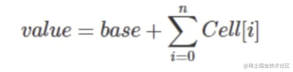 LongAdder 内部由一个 base 变量和一个 cell[]数组组成。当只有一个写线程,没有竞争的情况下,LongAdder 会直接使用 base 变量作为原子操作变量,通过 CAS 操作修改变量;当有多个写线程竞争的情况下,除了占用 base 变量的一个写线程之外,其它各个线程会将修改的变量写入到自己的槽 cell[]数组中,最终结果可通过以下公式计算得出: