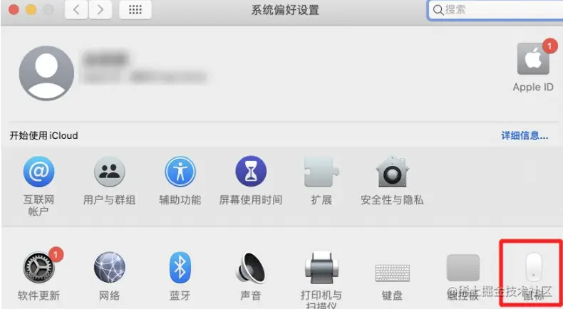 2.在系统偏好设置页面中,点击“鼠标”选项。