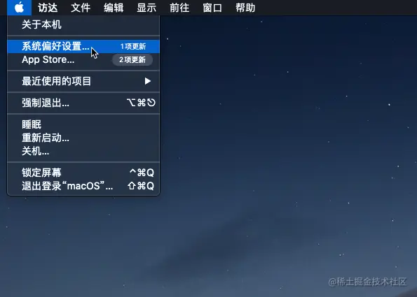 1.在电脑桌面的左上角找到苹果图标按钮,选择系统偏好设置。