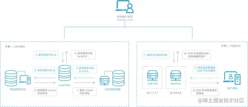 如果是客户端第一次访问,那么节点可能没有该网站内容的缓存。那么节点会到网站源服务器去请求资源,这个时间可能会相对较长。而如果节点已经有网站内容缓存,那则会直接将缓存内容返回给用户,让用户查看到网站内容。