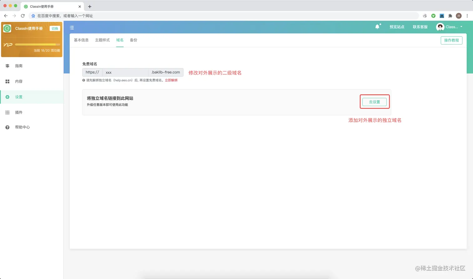 这款工具很贴心的是还提供了免费的二级域名,同时用户也可以绑定独立域名。小编建议帮助中心的话还是需要使用自己的域名才显得正式哦!
