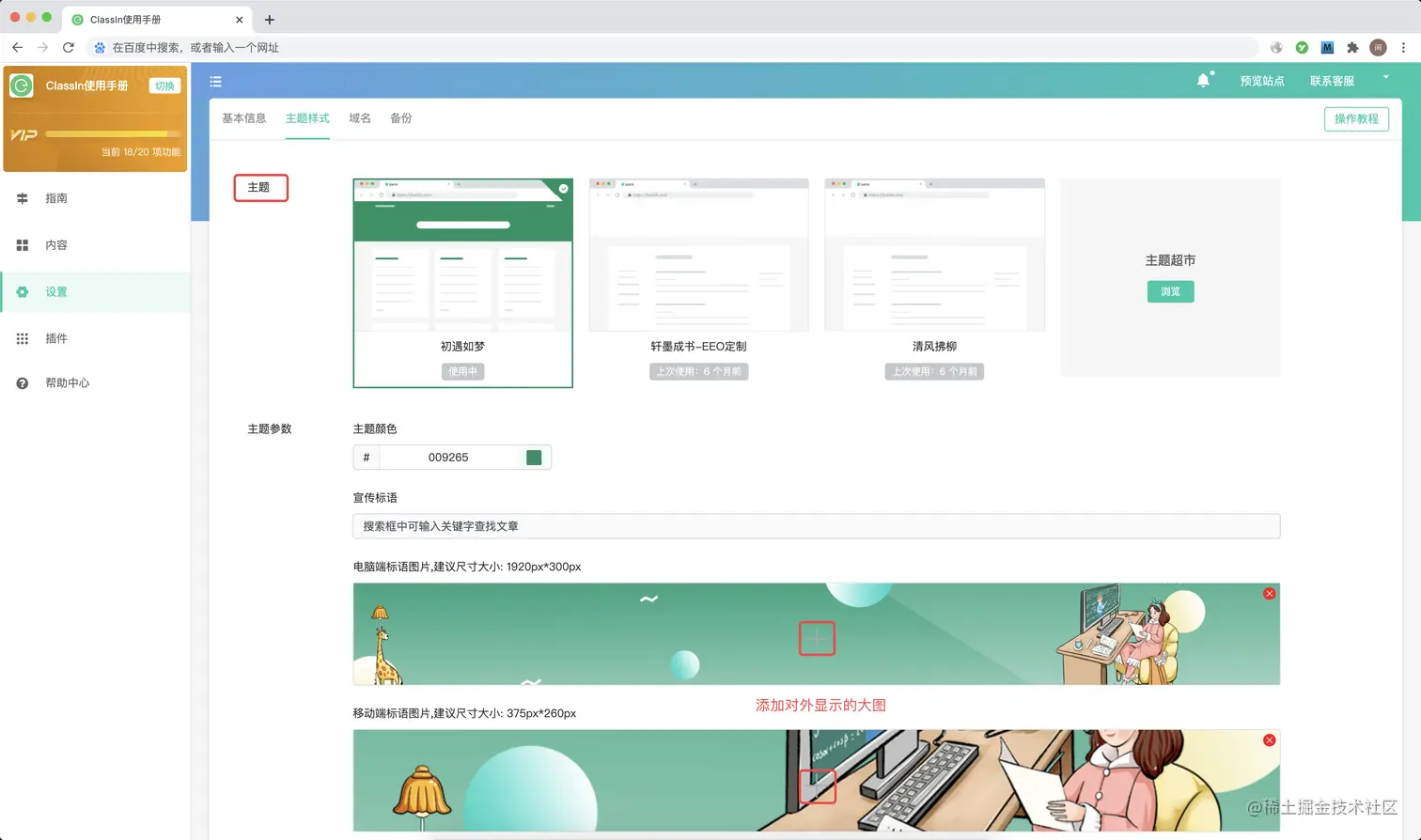 选择在线帮助中心对外展示的主题样式(不要太纠结,可以在后台随意更换的哦)