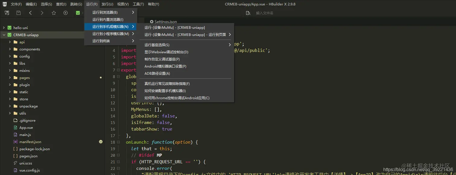 打开Hbuildx 编辑器设置Android模拟器端口配置和ADB路径