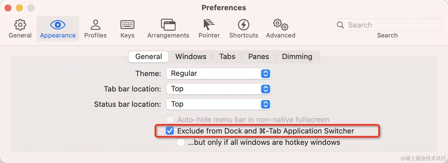 如果你不想每次打开 iTerm2 都打开默认的窗口,也就是静默打开程序,可以在 Appearence → General 设置: