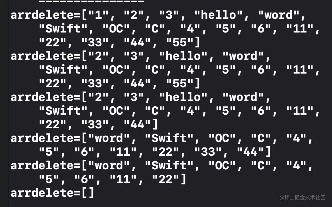 print("arrdelete=\(array)");