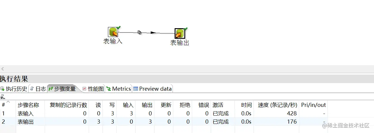 需要用到1个作业和6个转换来操作2张表,一个表是3个转换来完成,几张表总共的转换就是N*3个转换。