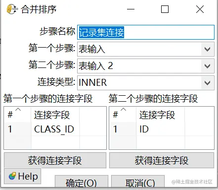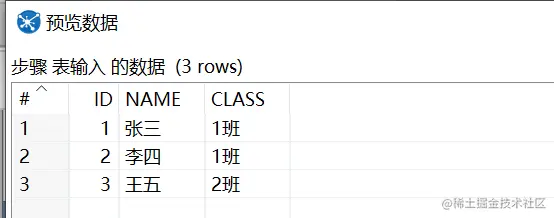 由上面流程图可以看到,start分了两个分支,一个是class表,一个是student表,下面我们来一一点开每个转换看下。