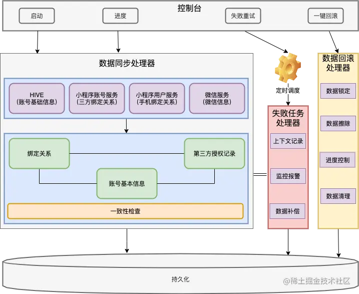 - 面向失败:整合处理过程中采取异步调度重试机制,保证不阻塞用户、不阻塞业务