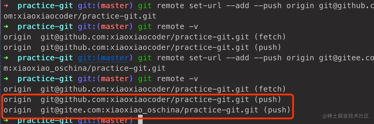 git remote set-url --add --push origin git@gitee.com:xiaoxiao_oschina/practice-git.git