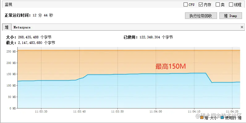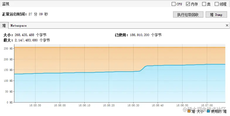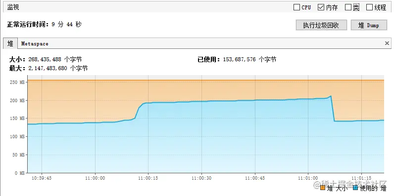 现在可以使用jvisualvm运行一边,看看内存效果。
