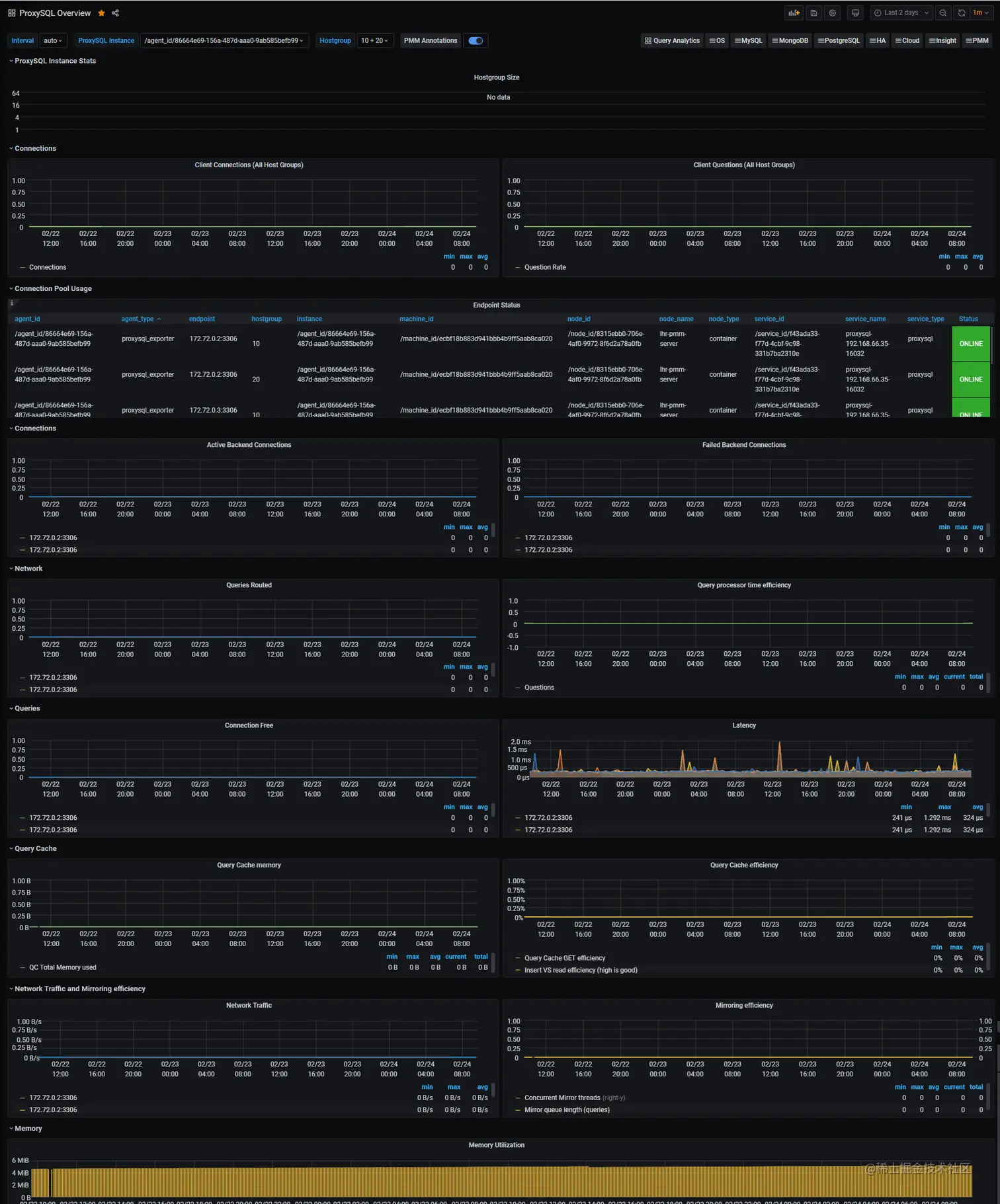 PMM(Percona Monitoring and Management)是一个免费的开源平台,用于管理和监视数据库性能,在docker环境中即可运行。它可以主动管理和监控MySQL(AWS RDS MySQL、Aurora MySQL、用户自建MySQL实例)、MariaDB、MongoDB、PostgreSQL等数据库,也可以监控ProxySQL中间件,并提供了众多指标与多样告警方式。