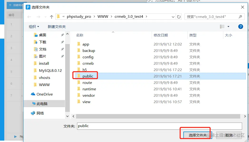 这里注意要选择根目录为:crmeb_3.0_test4目录,点击确定保存配置