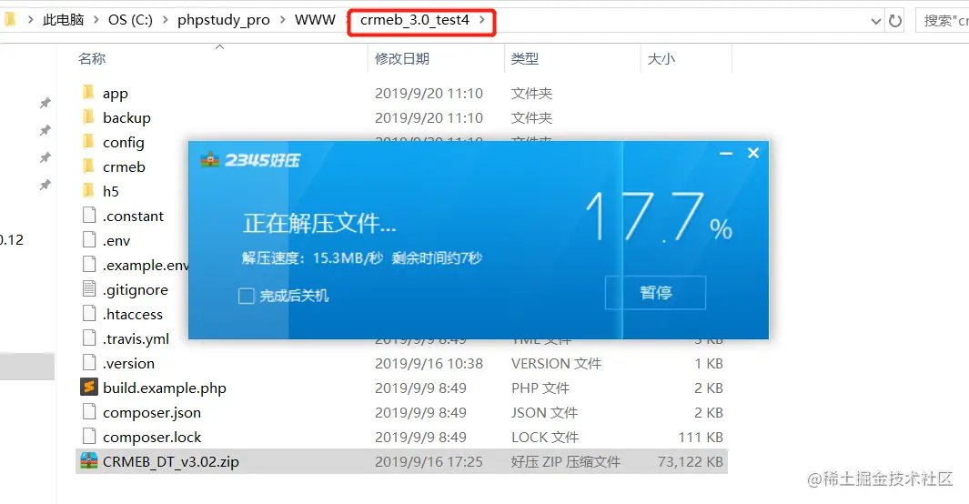 二、打开C:\phpstudy_pro\WWW 会自动创建WWW目录的,把crmeb安装包解压再WWW目录下的一个文件夹下 这里新建:crmeb_3.0_test4 文件夹,域名以:crmeb3.0test4.net 为例 , 如下图所示