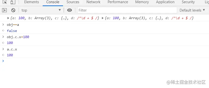 {a: 100, b: Array(3), c: {…}, d: /^\d + $ /} {a: 100, b: Array(3), c: {…}, d: /^\d + $ /}