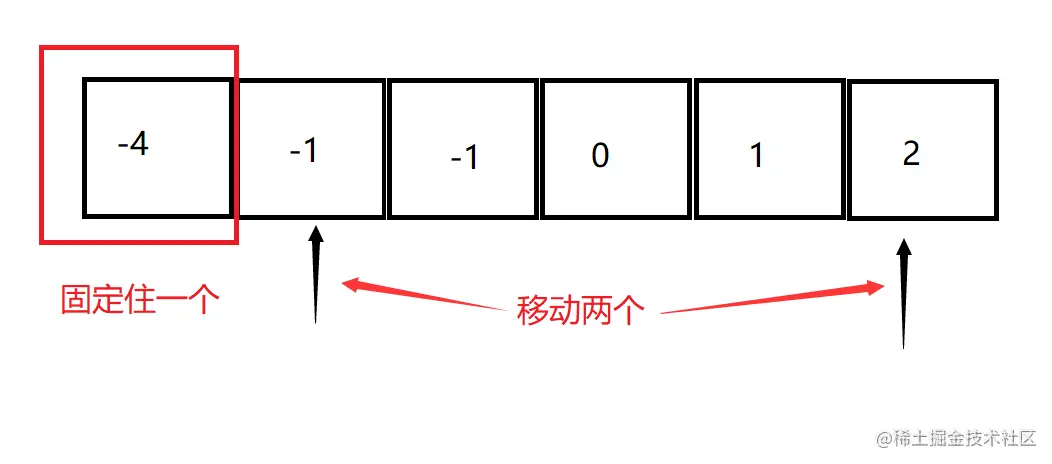 固定其中一个数,在剩下的数中寻找是否有两个数和这个固定数相加是等于0的。