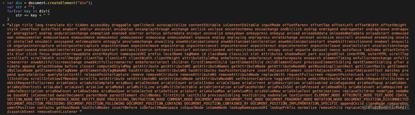 Virtual DOM 应该都不陌生,出现 Virtual DOM 的原因是因为浏览器加载DOM是比较 “昂贵“ 的,可以看下一个 div 大概有多少东西: