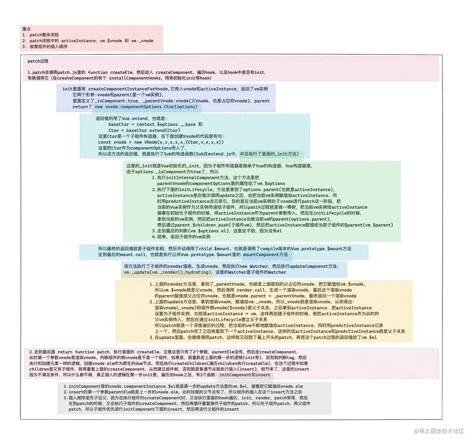 在完成组件的整个 patch 过程后,最后执行 insert(parentElm, vnode.elm, refElm) 完成组件的 DOM 插入,如果组件 patch 过程中又创建了子组件,那么DOM 的插入顺序是先子后父。