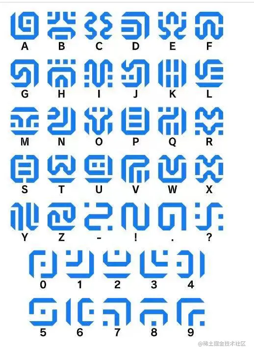 图片的格子大小为 100,从左到右分别是:abcdefghijklmnopqrstuvwxyz0123456789.-!?,我们一样可以按顺序拆分每个字母对应的符号图片。