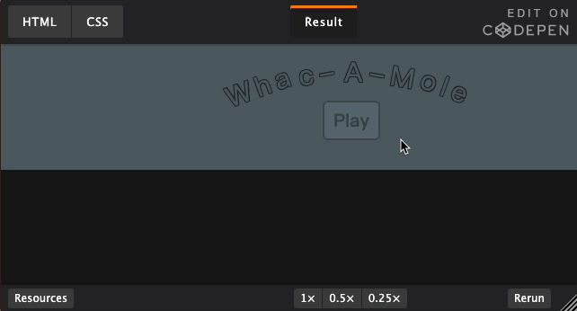 我们之前介绍过如何对checkbox改造(译者注:“checkbox hack”,即通过隐藏checkbox标签,展示lable标签,并用for属性将两者关联,最后根据checkbox上的CSS伪类选择器“:checked”来区分以及定义各种状态),来实现一个纯CSS的完全状态机。今天我们将沿着这个思路打造一个简单的打地鼠游戏,游玩者需要反应足够迅速才能赢得游戏,而这些所有的实现都不需要用到JavaScript。