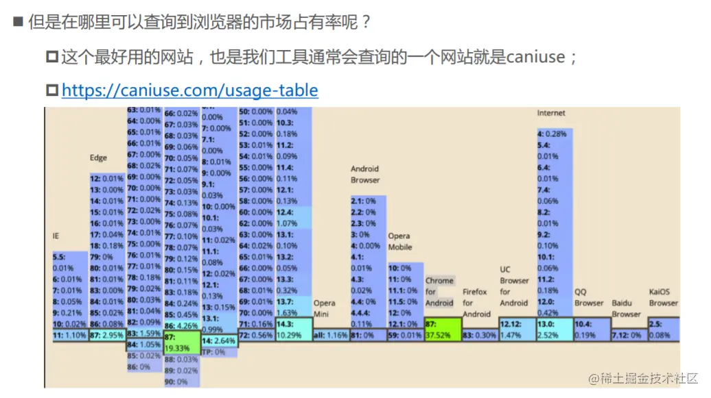 我们工具通常会查询的一个网站就是caniuse; caniuse.com/usage-table