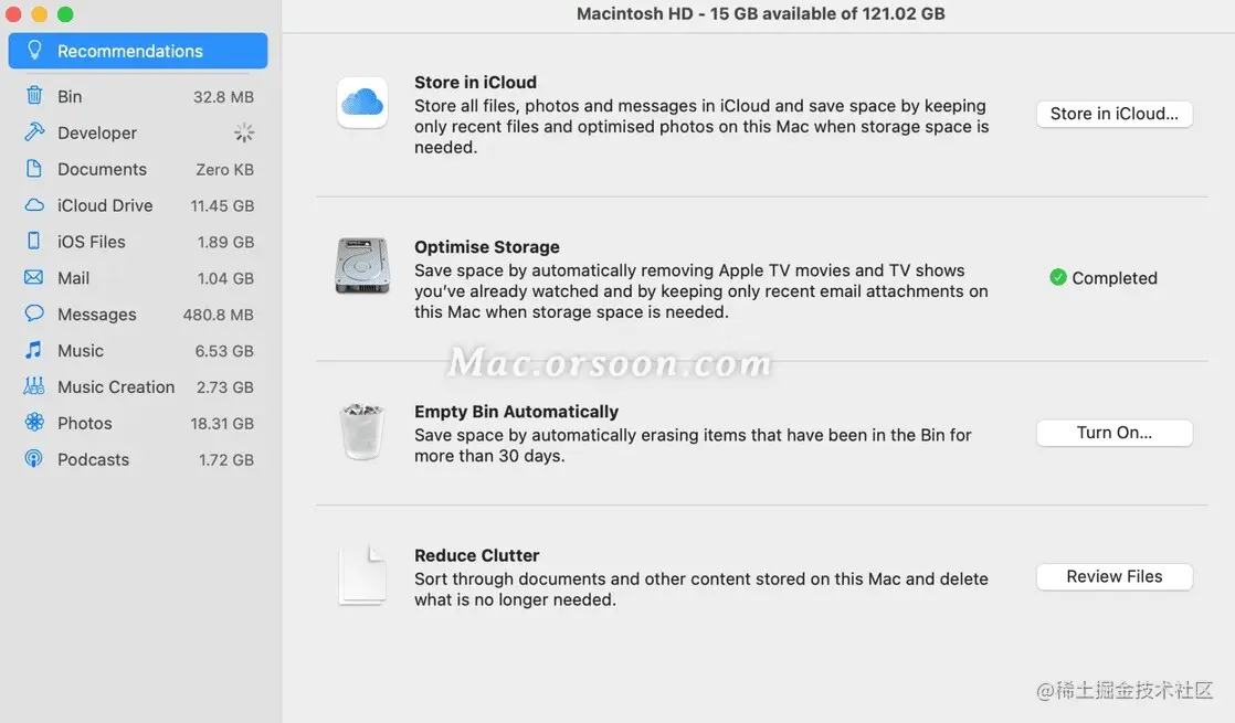 Apple提供了一些有用的工具来帮助您管理启动驱动器上的空间。