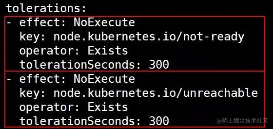 其中effect为NoExecute的taint会触发驱逐该节点上运行的应用(Pod)。但如果应用(Pod)容忍该taint,则不会被驱逐。
