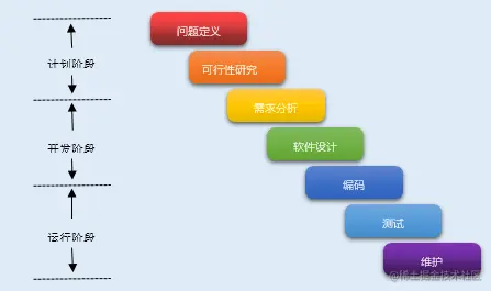 互联网早期的软件开发是瀑布开发模型,在需求评审阶段,产品经理给到的是完整、清晰、固定的需求,研发人员只要根据需求在约定的时间点进行交差即可,迭代的频率可能是1月1次,也可能是1个季度1次。