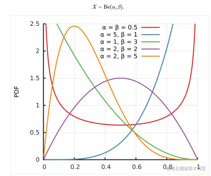 Β分布的概率密度函数是: