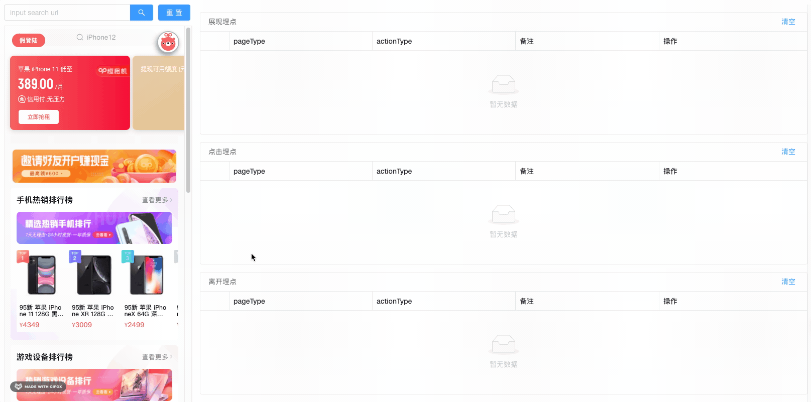 如图可见,当点击 banner 的时候,自动发送了点击埋点,同时触发了关闭页面的埋点,以及进入到下个页面的曝光埋点。 与此同时,在 backup 区域,也带上了更多信息,数据更加的全面精准。 备注:效果是通过我们的可视化埋点平台演示的,后期有机会我们也会介绍,敬请期待