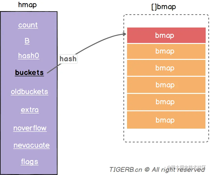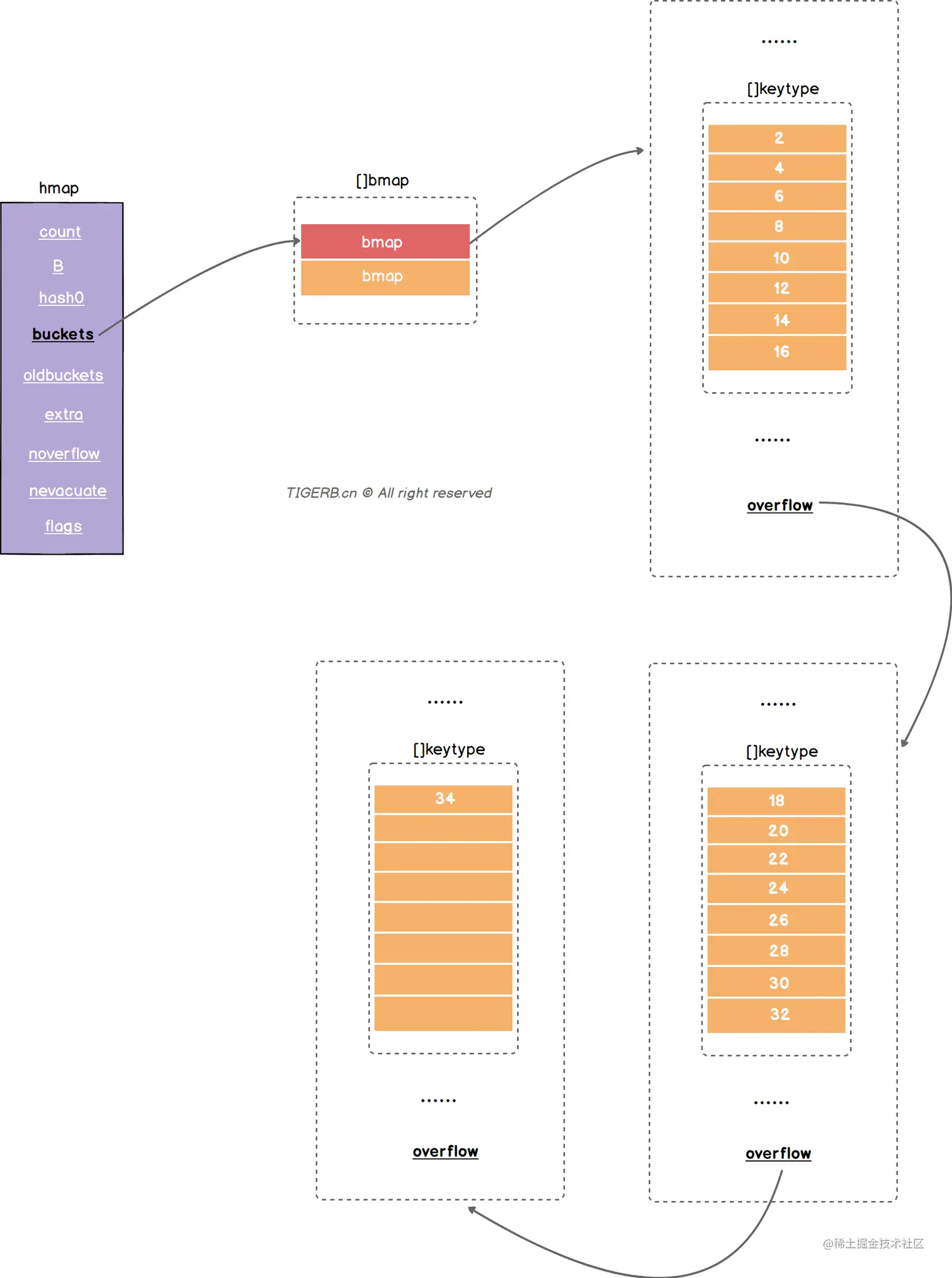 bucket(也就是buckets的第2个bmap) - 以索引为0的